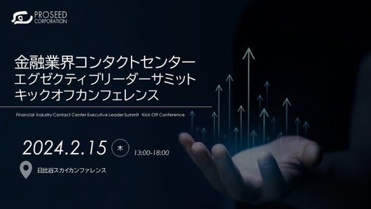 株式会社プロシードは、2024年度より金融業界のコンタクトセンターの戦略・運営を担うシニアマネジメント層(経営層、シニアマネジメント層)を対象とした事例共有や最新テーマの探求する場として、「金融業界コンタクトセンター エグゼクティブリーダー・サミット(以下、金融CCリーダーサミット)」を年5回開催します。この開催に先立ち、2024年2月15日(木)にキックオフカンファレンスを開催いたします。