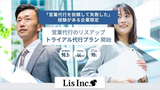 株式会社Lis(ヨミ:リス、所在地:東京都渋谷区、代表:浅井央)は、自社の運営する営業支援サービス「リスアップ」にて、「営業代行を依頼して失敗した経験のある企業様限定」の特別トライアルプラン「KAKUJITSU」プランを開始したことをお知らせします。