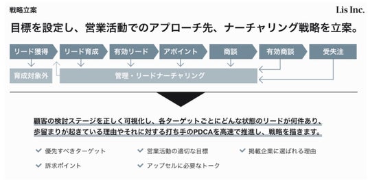 本プランでは、株式会社Lisのプロフェッショナル営業マンが、0からリード獲得~クロージングまでを行い、契約前にトライアルで成果を出すまでのプロセスを実際にお見せすることができます。