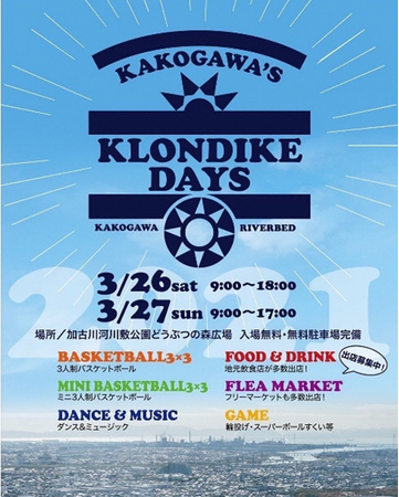 NPO法人播磨夢づくりは、3月26日(土)~27日(日)は兵庫県加古川市の加古川河川敷にて『KAKOGAWA KLONDIKE DAYS(かこがわクロンダイクデイズ)』を開催いたします。(令和3年度 加古川市「協働のまちづくり推進事業補助金」助成事業)