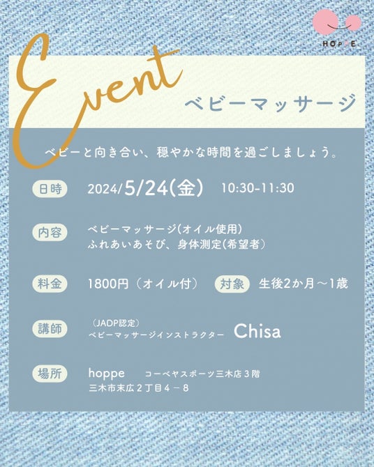 【Webページ】https://hoppe-npo.com/2024/04/20/2024-5-24-babymassage/