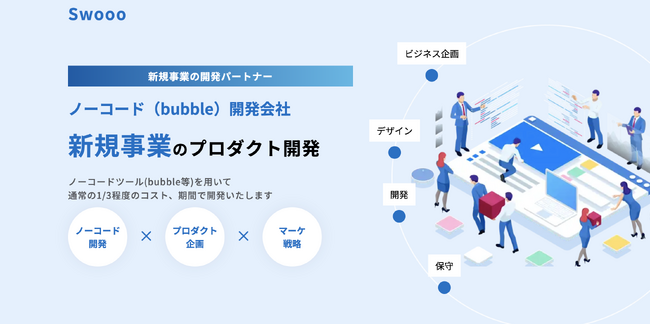 SwoooはBubble Group, Incが提供するノーコードプラットフォーム「Bubble」の正規代理店として認定されています。