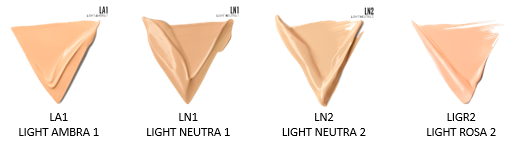 “A””R””N”はアンダートーンを表し、AMBRA ゴールドのアクセサリーが似合う、似合わせたい時に選ぶウォームカラー“A“ 。ROSA シルバーのアクセサリーが似合う、似合わせたい時に選ぶクールカラー”R”。NEUTRA 2つの中間であるニュートラルカラー“N”の3つを用意。