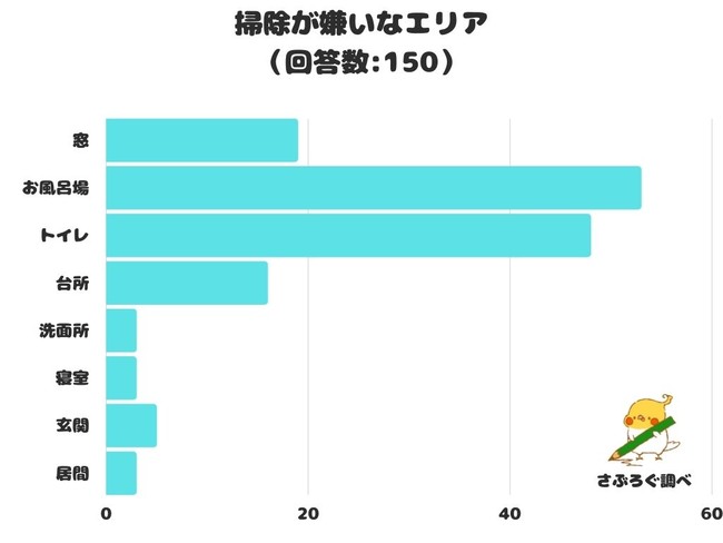 掃除が嫌いなエリアをアンケートにて調査したところ、1位は「お風呂場」でした。