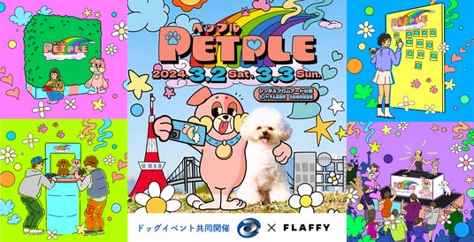 “イヌとヒトの関係をフラットに”をコンセプトに、14.1万フォロワーの国内最大級の犬情報メディア事業や人間の服を愛犬の服にリメイクするサービスを複数展開する株式会社FLAFFY(本社:東京都渋谷区、代表取締役:廣田 智沙/以下 当社)は、エイベックス・ライヴ・クリエイティヴ株式会社(本社:東京都港区、代表取締役:山中昭人/以下 ALC)と共同でプロデュースする国内最大規模のペット× ヒトにフォーカスしたドッグイベント「PETPLE (ペップル)」を2024年3月2日(土)・3日(日)の2日間限定で東京・お台場特設会場にて開催します。当イベントのPETPLE CIRCLEでは『人と犬が一緒に楽しめるテーマパーク』をコンセプトに様々なコンテンツをご用意。ミュージカルショーやDJといった音楽コンテンツや愛犬と自分の姿を新しい角度から撮影できる自撮りエンターテインメント、PETPLE CIRCLE内限定のフードやドリンク等、盛りだくさんの内容です。