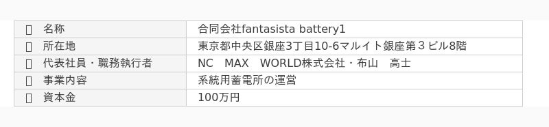 ※合同会社fantasista battery1は、当社の連結子会社NC MAX WORLD株式会社の100%子会社になります。