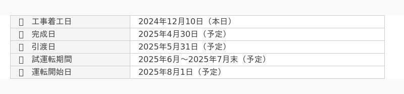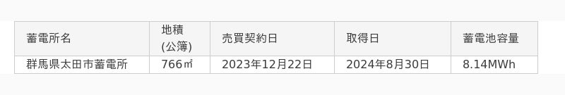 2024年9月20日付「(経過開示)系統用蓄電池事業「群馬太田蓄電所」における工事請負契約の締結及び事業開始のスケジュール変更に関するお知らせ」にて、工事着工を2024年12月1日(予定)としておりましたが、本日、建設工事に着工いたしました。その後の完成日、引渡日、試運転期間、運転開始日の予定変更はございません。