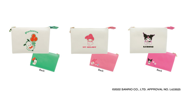 ◆3ポケットポーチ 昭和レトロ (左から) ポチャッコ/マイメロディ/クロミ 各1,518円(税込)