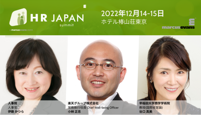 マーカス・エバンズ・イベント・ジャパン・リミテッド(本社:英国/代表:雪下 大輔、以下「マーカスエバンズ」)は、2022年12月14日-15日に、人事部門統括責任者向けビジネスサミット『HR Japan Summit 2022』をホテル椿山荘東京にて開催いたします。