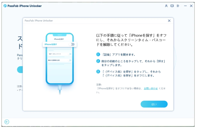 それでは、PassFab iPhone Unlockerでスクリーンタイム・パスコードを解除する方法を見ていきましょう。