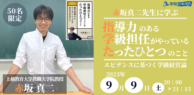 今回のセミナーは、『指導力のある学級担任がやっているたったひとつのこと』の著者である上越教育大学教授の赤坂真二先生にご登壇いただき、書籍の内容を中心にエビデンスに基づいた学級経営論について学ぶイベントを開催します。