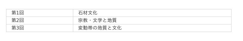 ◎ 宗教学や人文学の視点から地質学を考える、学際的な講座内容です。