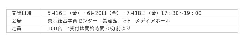 開講日程 : 5月16日(金)・6月20日(金)・7月18日(金)