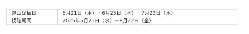 視聴期間 : 2025年5月21日(水)~8月22日(金)
