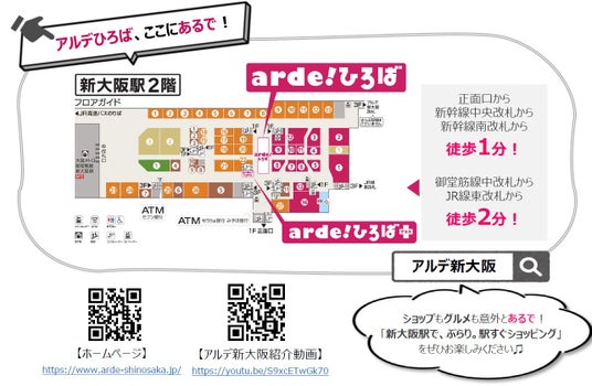 「アルデ新大阪」(運営会社:新大阪ステーションストア)は、大阪・関西の玄関口である新大阪駅の2階(改札外)にあるショッピングセンター。関西の食文化にこだわりながら、出先で便利なお店を揃えております!