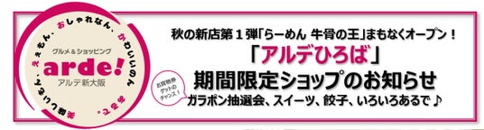 話題性の高いお店がかわるがわる出店するアルデひろばの新ネタを中心に、アルデ新大阪のイベント情報等についてお知らせいたします!