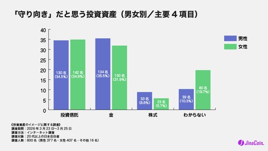 「守り向き」だと思う投資資産、1位は「投資信託」で「金」とほぼ同率