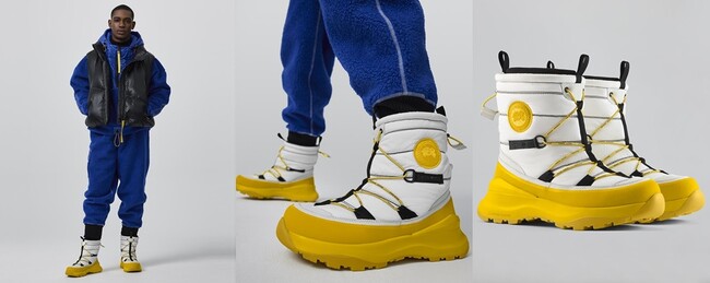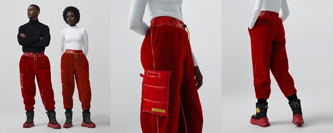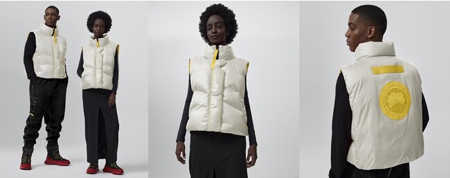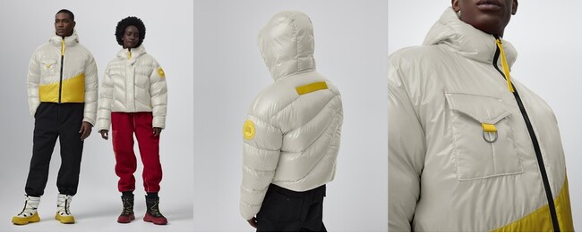 保温性を保ちながら個性的なスタイルを表現したい人々に向けて、風を感じさせる波のようなデザインと楕円形のヘムラインを組み合わせ、ユニークで躍動的なルックを作り出しました。赤、黄、青、黒といった鮮やかなカラーに、エンボス加工を施したライニング、大きなカナダグースのディスクロゴ、Pyer Mossを象った刺繍、そして各モデルに配されたPyer Mossのワードマークなど、それぞれのブランドのディテールが唯一無二の存在感を与えます。カナダグースとPyer Mossによるカプセルコレクションは、10月21日(土)、カナダグース銀座店と公式オンラインストアにて発売します。