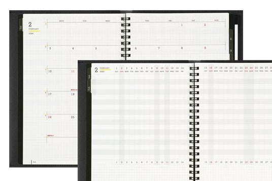 『ニーモシネダイアリー』は、ひと月の予定を俯瞰できる“月間ブ ロック”と、複数の仕事を並行して管理できる“ガントチャート”の 2 つのフォーマットを交互にレイアウトした手帳です。