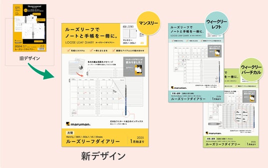 マルマン株式会社(本社:東京都中野区)は、自分好みにカスタマイズできる手帳『2025年1月始まり ルーズリ ーフダイアリー』において、2014年以来10年ぶりとなるパッケージデザインのリニューアルをします。また、アイ デアとスケジュールを1冊でまとめられる『ニーモシネダイアリー ノートパッド&カバー付き』をスリムにしてリニ ューアル。2024年8月2日(金)より文具取扱店にて販売します。