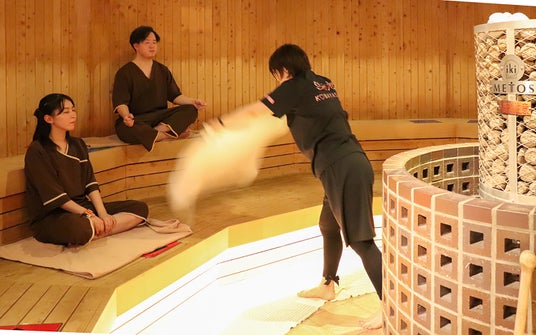 熱波師のパフォーマンスも楽しい大人気のロウリュウ
