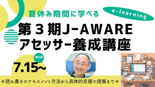 【読み書きアセッサー養成講座eラーニング】では、読み書きアセスメントを担い、支援に直結できる読み書きアセッサーを養成します。夏休み期間に学びたいというご要望にお応えして第3期を7月15日に開講します。