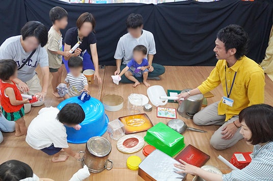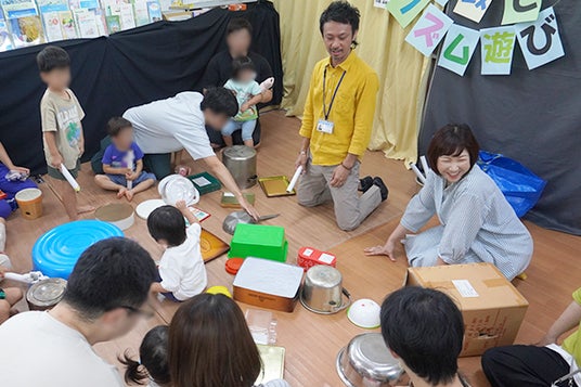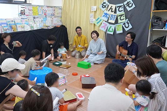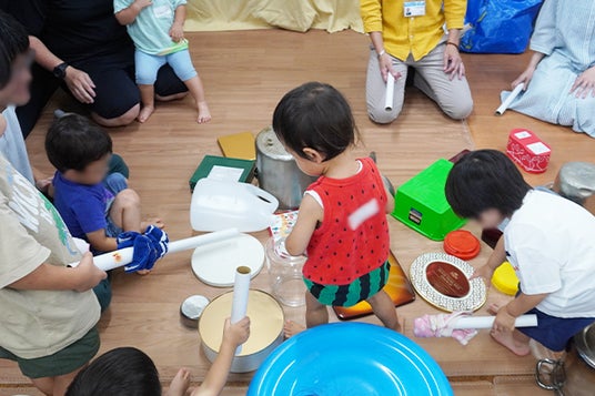横浜市で総合ポピュラー音楽教室を運営する株式会社アダチ音研は、2024年8月17日(土)、横浜市南区にある特定非営利活動法人「さくらザウルス」が運営する親と子のつどいの広場「さくらザウルス蒔田ひろば」にて、「なんでも太鼓でリズム遊び & ギターと一緒にみんなで歌おう」と題して親子で楽しむ音楽イベントを開催しました。普段身の回りにある物を「太鼓」してリズム遊びをしながら、ギターの生演奏に合わせてみんなでうたを歌う内容です。