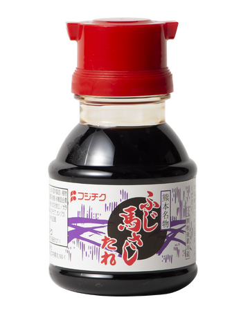 九州特有の「濃く」「甘い」のが特徴の馬刺し専用のタレです。少しとろみがあるタレは馬刺し専用とあってふじ馬刺しの旨味をとても引き立ててくれる名脇役です。フジチクではふじ馬刺し購入につき5mlの小袋のタレを付けていますが、その際に気に入って100ml・360mlのボトルを購入する方が多くいます。