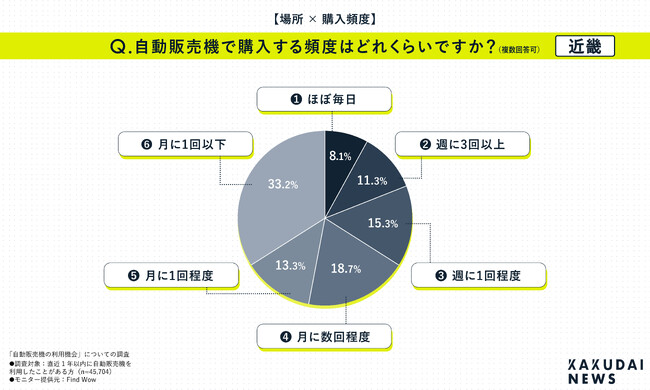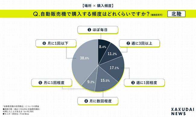 月に1回以下の利用の方の割合が全国で一番低く、比較的、自動販売機の利用が多いエリアだと想定できます。