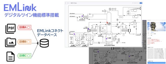工場・インフラ向け設備保全クラウド『EMLink』を提供する株式会社設備保全総合研究所は、新たに デジタルツイン機能「コネクト」 を全プランに標準搭載いたしました。P&ID(配管計装図)やレイアウト図、現場写真の上に「設備タグ」をピン留めすることで、工場・インフラデータを2D図面で視覚的に統合。図面等から設備台帳・計画情報・ワークフローへワンクリックでアクセスできる機能です。