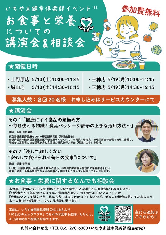 いちやま健幸倶楽部では、今後も“食”と“健康”をテーマに、皆さまの生活に役立つイベントを定期的に開催してまいります。