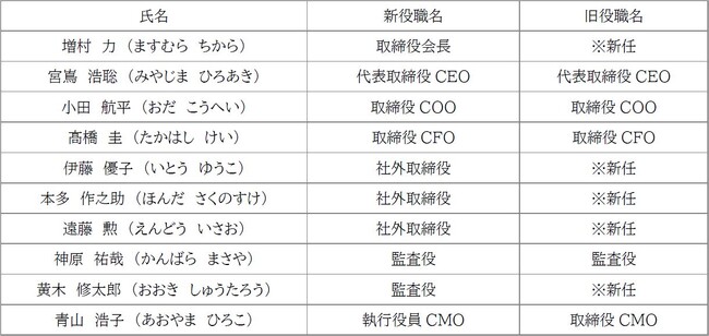 今回の体制変更により、新たに「取締役会長」および「社外取締役」の新設、「監査役」の増席をすることで、今後の地域内協力体制の強化、経営スピードの向上、事業実施の確実性の向上を目指します。