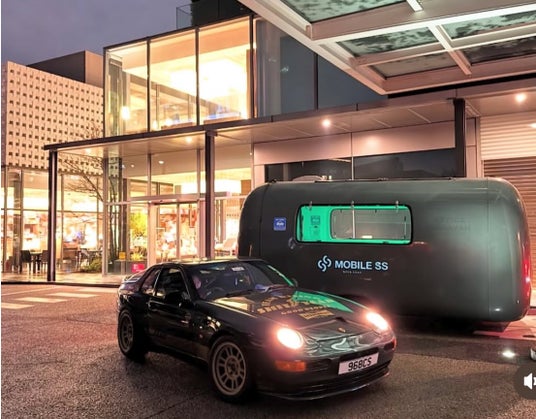 カエルム株式会社様 ~移動式リスニングバー モバイルSS モビリティサインでご採用~