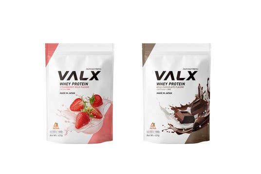 一般的に味の再現が難しいとされるフルーツ系の風味開発にも定評のあるVALX。その技術を生かし、フレッシュな酸味が際立つ「いちごミルク風味」と、濃厚な「ミルクチョコレート風味」の2種を展開します。“溶けやすさ”にもこだわり、本格的なトレーニングをされている方はもちろん、美容や健康習慣を大切にする方、プロテイン初心者の方まで、日常のさまざまなシーンで手軽に取り入れられます。