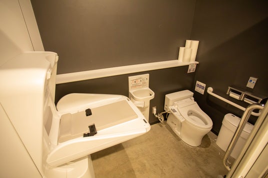 こちらは、オストメイト対応になっていますね。ストーマ(人工肛門や人工膀胱)を造設している方は、パックに溜まった排泄物を処理しやすいように、写真右側のような流し台があると便利なのです。
