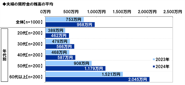 ・夫婦の預貯金額は平均968万円、昨年調査から215万円の大幅増加