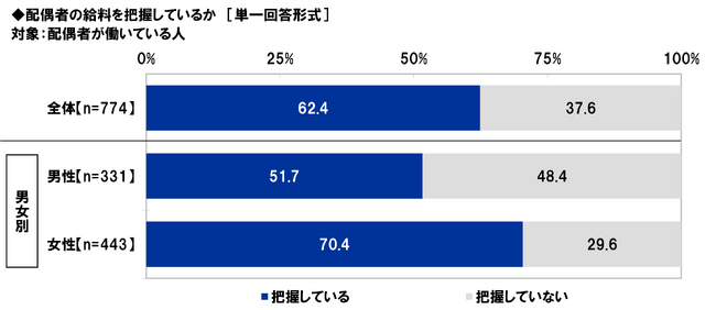 ・「妻の給料を把握していない」夫の48%、「妻の娯楽費・交際費を把握していない」夫の73%
