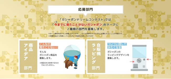 「ガシャポンドリームコンテスト」では「今までに見たことがないガシャポン」をテーマに2種類の部門を募集します。