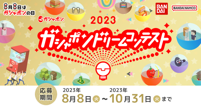株式会社バンダイ ベンダー事業部(本社:東京都台東区)は、昨年ガシャポン45周年の節目に制定された8月 8日「ガシャポン(R)の日」を記念し、ガシャポン史上初のアイデアコンテスト「ガシャポンドリームコンテスト」を2023年8月8日(火)より開催します。