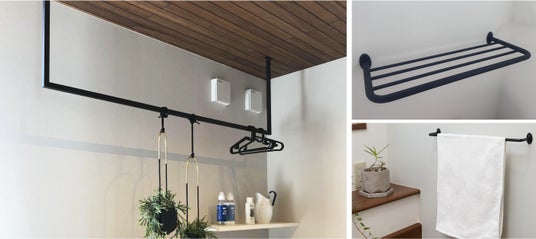 複数のパイプで構成されたシンプルな形状は、タオルやハンガー、植栽等を引っ掛けることができるので、幅広い用途で使用することができます。