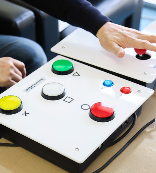 既存のコントローラーではeスポーツに取り組むことが難しい、手指の動きや筋力に制約がある重度障がい者用のオーダーメイドコントローラーです。