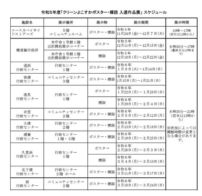 入選作品は、市役所や行政センター、コースカベイサイドストアーズにて展示を行います。