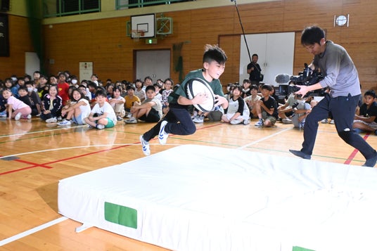葛飾区渋江小学校は、今年創立90周年を迎えるメモリアルイヤーです。9月26日(木)同校体育館にて、パリ2024オリンピック女子セブンズ日本代表(過去最高9位を記録)で、同校を卒業された三枝千晃選手をお招きして、児童からの質問に答えたり、一緒にトライをするなど交流イベントを実施。