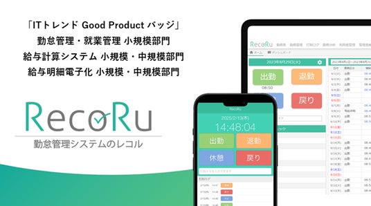 中央システム株式会社(本社:東京都新宿区、代表取締役社長:本間 匡、以下中央システム)が提供するクラウド勤怠管理システム「RecoRu(レコル)」は、株式会社Innovation & Co.(本社:東京都渋谷区、代表取締役社長:幸 哲史)が提供する法人向けIT製品・サービスの比較サイト「ITトレンド」が発表するGood Productバッジを3部門で受賞したことをお知らせします。