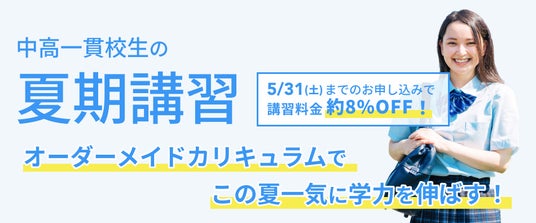 株式会社メイツ(本社:東京都新宿区 代表取締役:遠藤尚範)が運営する『中高一貫校専門 個別指導塾WAYS(以下、WAYS)』では、2025年5月31日(土)までに7/19(土)から開講予定の夏期講習にお申し込みいただいた方を対象に、夏期講習の料金が最大で約8%OFFとなるキャンペーンを実施することが決定いたしました。ぜひお早めにお申し込みください。