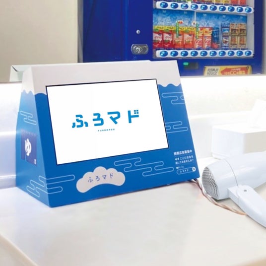 「ふろマド」は、株式会社SENSEが運営する日本初の温浴施設特化型デジタルサイネージメディアです。銭湯・スーパー銭湯・サウナ施設の脱衣所や待合スペースなどに設置したデジタルサイネージに映像広告を配信し、広告収入の一部を銭湯へ還元することで銭湯・サウナ文化の維持・発展に貢献しています。地域密着型のプロモーションメディアとして、広告主と温浴施設利用者、そして温浴施設の「三方良し」となることを目指しています。