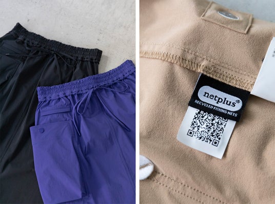 フォーウエイ機能と環境にやさしい「C-zero撥水」を採用。タグのQRコードから「NetPlus」のバックグラウンドや取り組みを掲載した特設ページにリンクできる