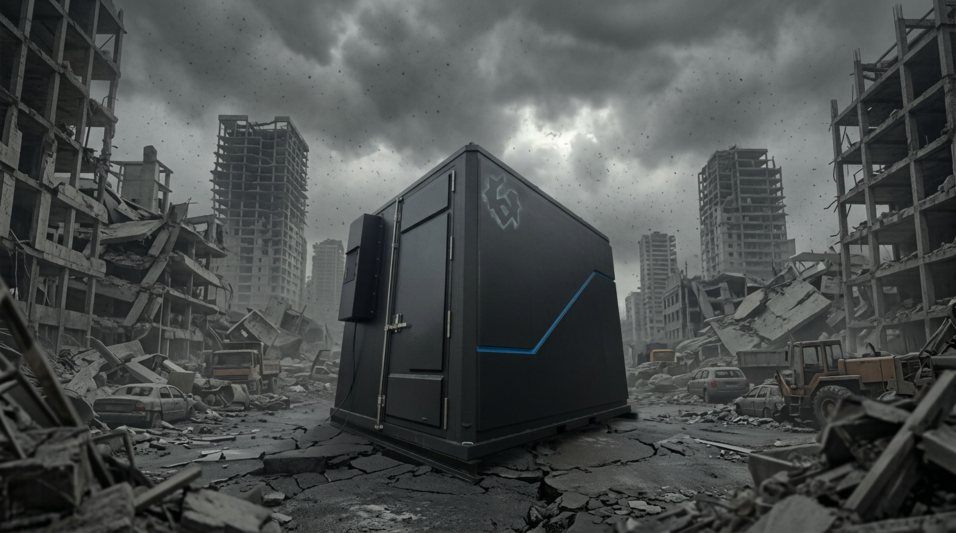 AI・GPUサーバーやストレージ等をいかなる状況下でも保護し、運用を継続させるシェルタータイプのコンテナ型データセンター。「Japan IT Week 春」(2026/4/8~10)にて実機を先行展示
