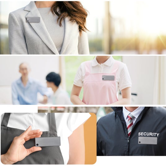 胸元に装着する名札型のため、従来の監視カメラのような威圧感を与えず、接客の質を維持しなが