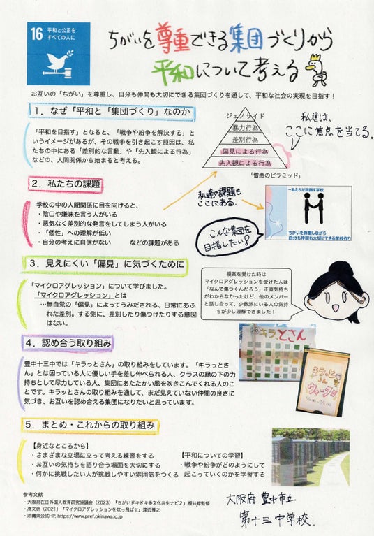 豊中市立第十三中学校「集団づくりから平和について考える」